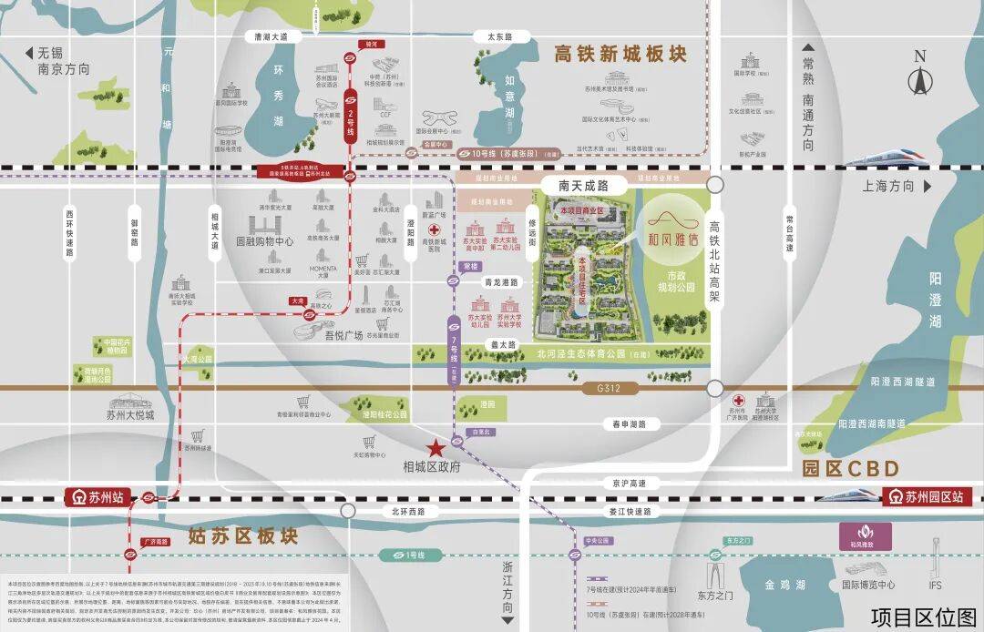 全维配套,兑现高品质生活教育:苏州大学实验学校(幼小初高)、南师大苏州实验学校等名校环绕,书香氛围浓厚,为家庭提供优质的教育资源。医疗:高铁新城医院、在建的苏州市妇幼保健院、相城人民医院,为健康保驾护航。生态:项目旁就是规划公园,还有北河泾生态体育公园、环秀湖公园等城市绿肺,鲜氧环绕。商业:吾悦广场、大悦城、圆融购物中心等大型商业体齐聚,吃喝玩乐购一站式满足。文体:高铁之心、国际会议酒店、规划中的大剧院、美术馆等,赋予生活艺术与格调。这些完善的配套,共同构成了和风雅信所倡导的高品质生活场景。